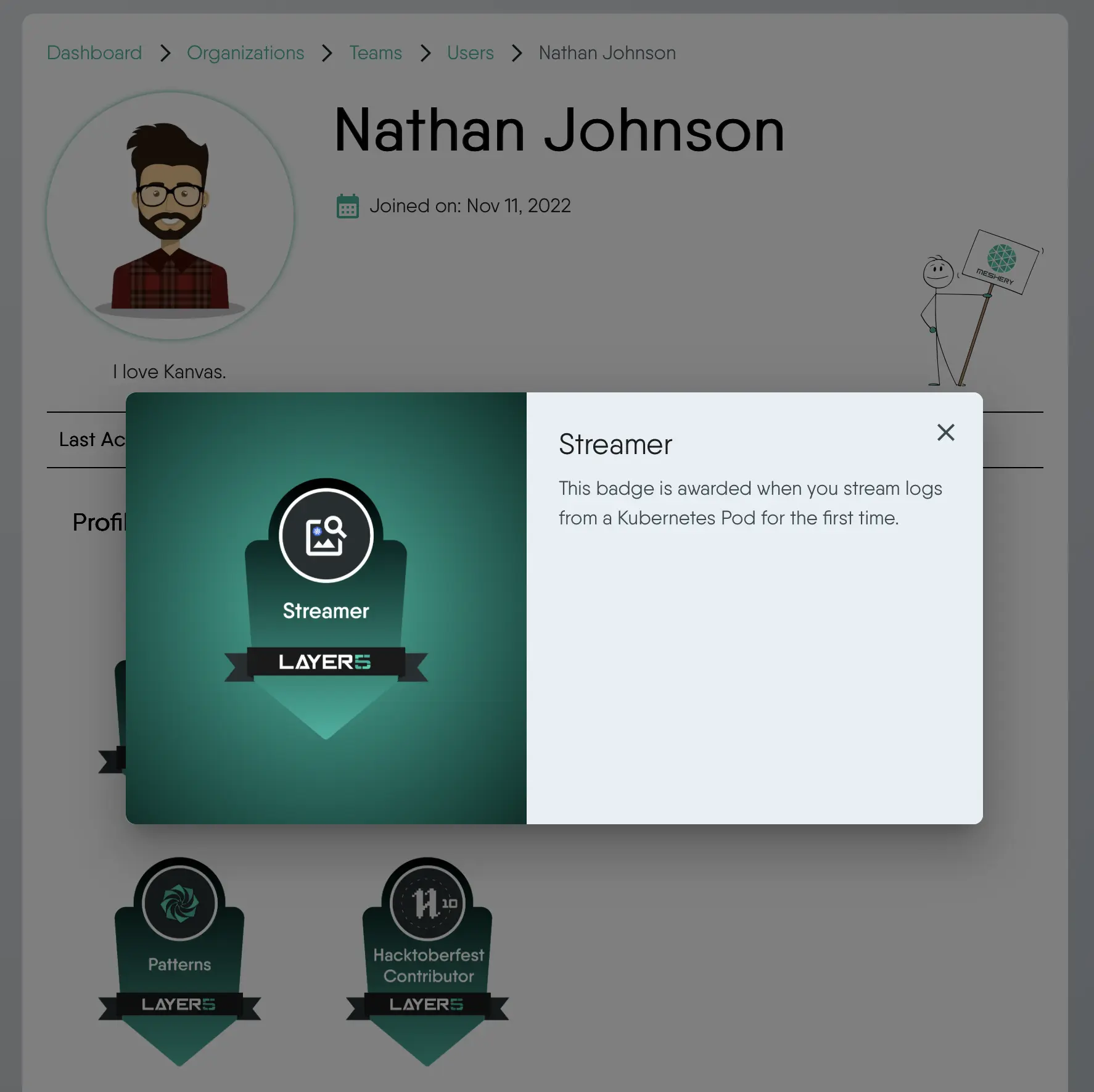 • Achievement Badges: Earn badges for key milestones, like streaming logs from a Kubernetes Pod for the first time.